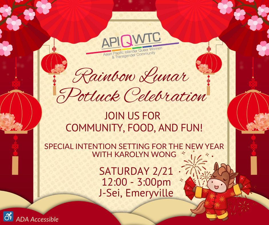 You’re invited to join us on February 21st from 12-3PM, at J-Sei in Emeryville, CA, to celebrate the Lunar New Year with the community and enjoy a delicious potluck together! Holistic life coach Karolyn Wong will join us to help set our intentions for the new year!